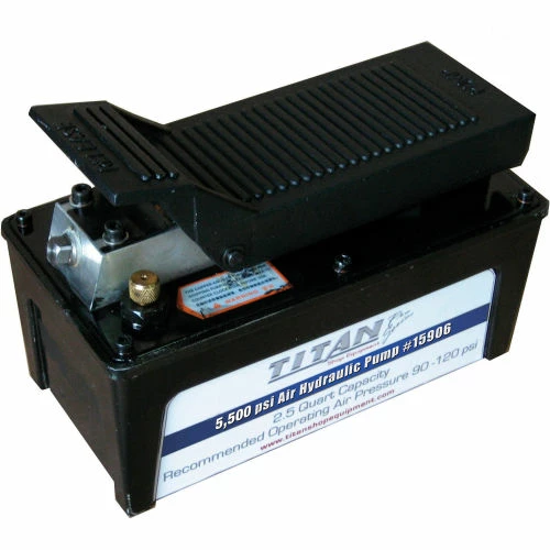 Titan Air Hydraulic Pump is compact and lightweight with 5,500 PSI (379 Bar) Maximum Pressure that is Ideal for rolling bridge jacks and has oil capacity of 2.5 Quarts. Comes with 1 Year Limited Warranty.