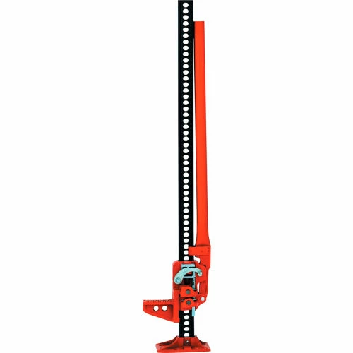 Jeep Jack 48″ lift has 7,000 lbs. of lifting capacity. Applications: use chain or cable attachments for taking up slack in cable, wire, wire fences, and conveyor belts. Lifts equipment, small buildings and trucks. Also good for fence work and winching. Pulls machinery and lifts or lowers them for installation or maintenance. Many other uses when used with cable or chain.