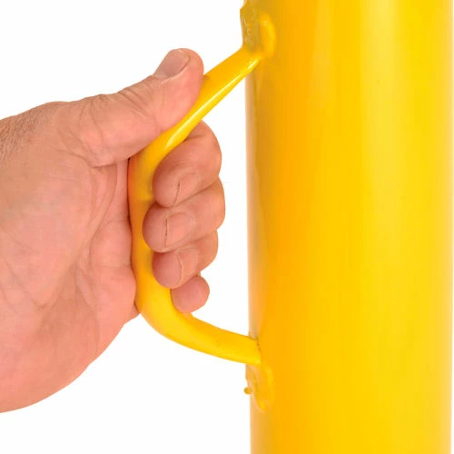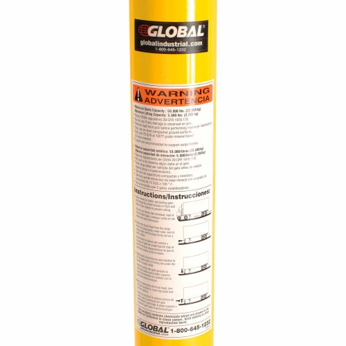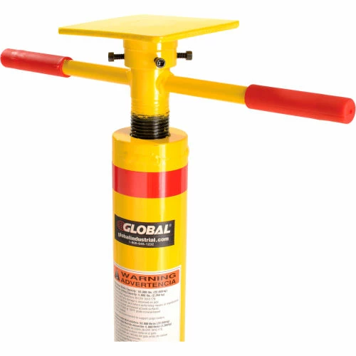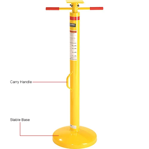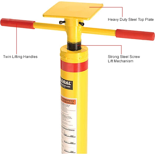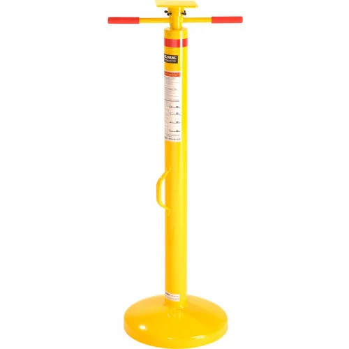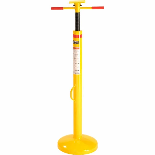 This jack has twin handles for fast, easy 44″ to 51″ height adjustment. It features a 5″ x 5″ top plate and a 14″ diameter base plate for stability. 50,000 lb. static capacity and 5,000 lb. lifting capacity. Includes convenient carrying handle.