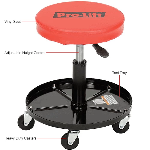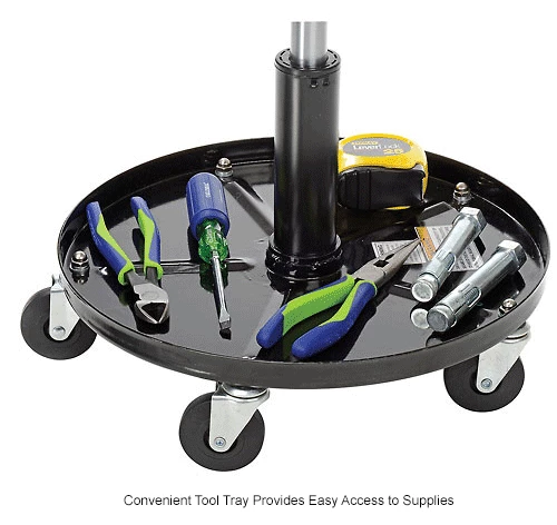 Pro-Lift Pneumatic Chair – C-3001 is ideal for maintenance and repair applications. This chair adjusts to the desired height allowing you to work efficiently in your work space and keep your tools close by with the added tool tray.