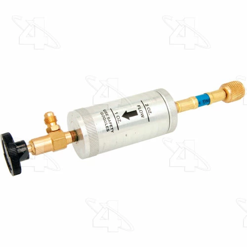 - Utilizes pressure differential from high to low side to inject 2 oz of oil into system
