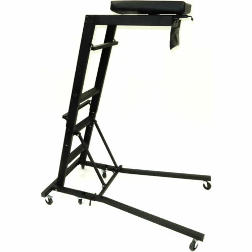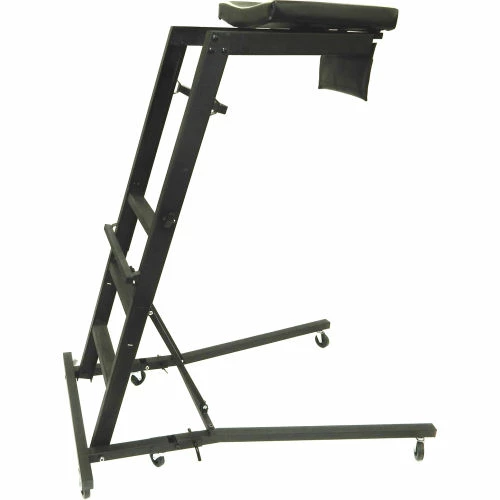 ShopSol Engine Creeper is designed for over the hood auto applications to properly position the technician for engine repairs and adjustments. Unique features includes user friendly height adjustment mechanism, and bed extension adjustment. User friendly latch system for height adjustment with steel pins. 48″ to 64″ height adjustment for cars, SUV’s and pickups. Pivoting bed/legs for fold-away and storage. Parts Storage bag to keep tools available while maintaining engine. Industrial pin casters (4 w/ locking casters). Meets and exceeds ANSI/BIFMA testing