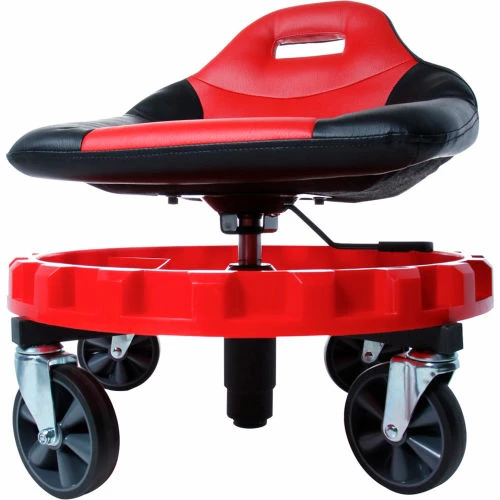 Despite the huge casters, the adjustable seat height can get down to a low level where a number of jobs (most notably work on brakes) take place. This is possible because of our drop sleeve design that is exclusive to our ProGear model. The ProGear Mobile Gear Seat is beautiful and functional. Truly a work of art.